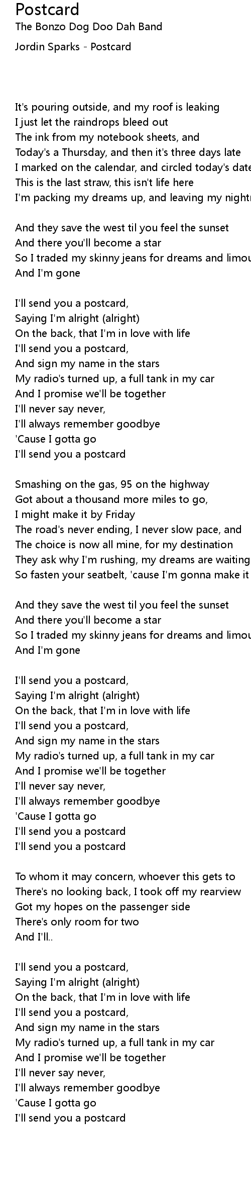 Postcard Lyrics