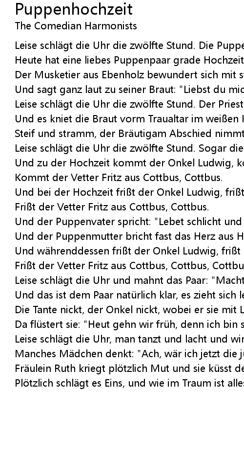 | Leise schl gt die Uhr und mahnt das Paar: " Macht euch bereit zum Glü ck." | |