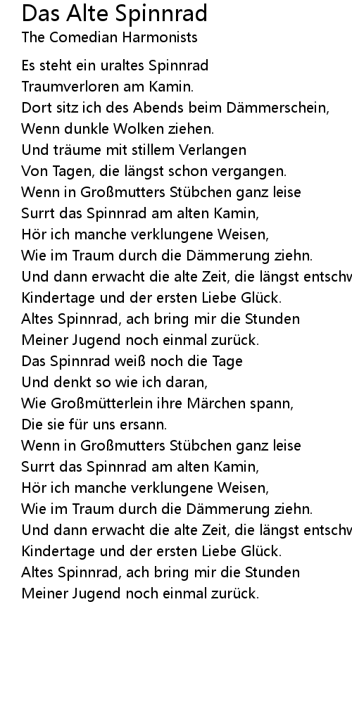 | Song | Das Alte Spinnrad |