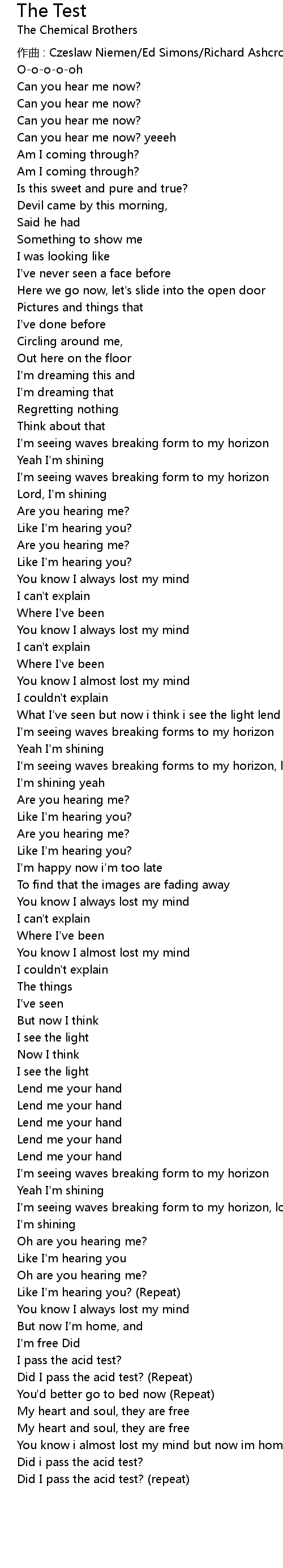 | 作曲 : Czeslaw Niemen/Ed Simons/Richard Ashcroft/Tom Rowlands | |