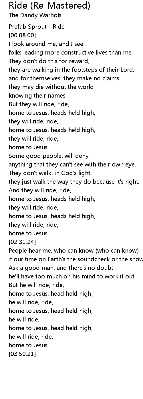 But he will ride, ride, |