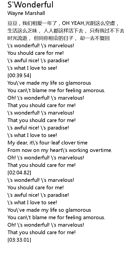 | [01:09.57] | ' s wonderful! ' s marvelous! |