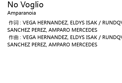 | [00:00.000] | 作词 : VEGA HERNANDEZ, ELDYS ISAK / RUNDQVIST, KARL THOMAS / SANCHEZ PEREZ, AMPARO MERCEDES |