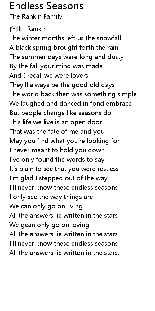 | I' ll never know these endless seasons | |