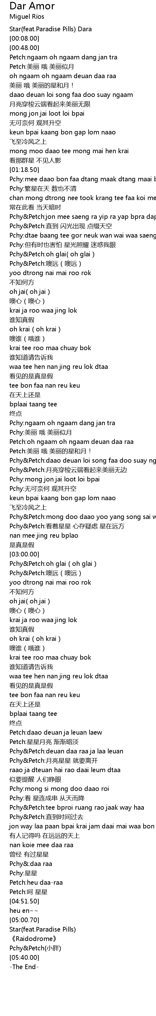 | [04:13.90] | Petch: xīng xīng yuè liàng jiàn jiàn àn dàn |