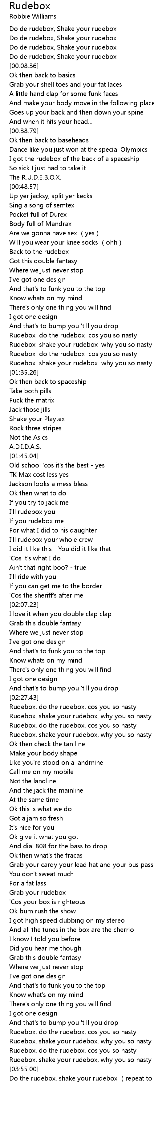 | [02:32.38] | Rudebox, shake your rudebox, why you so nasty |