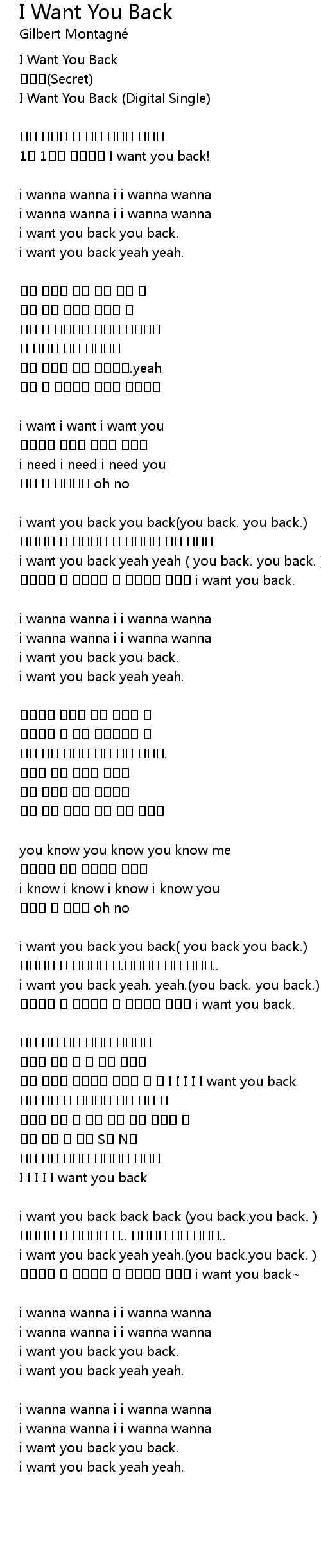 | 너의 거짓말 새까맣게 타버린 내 맘 I I I I I want you back | |