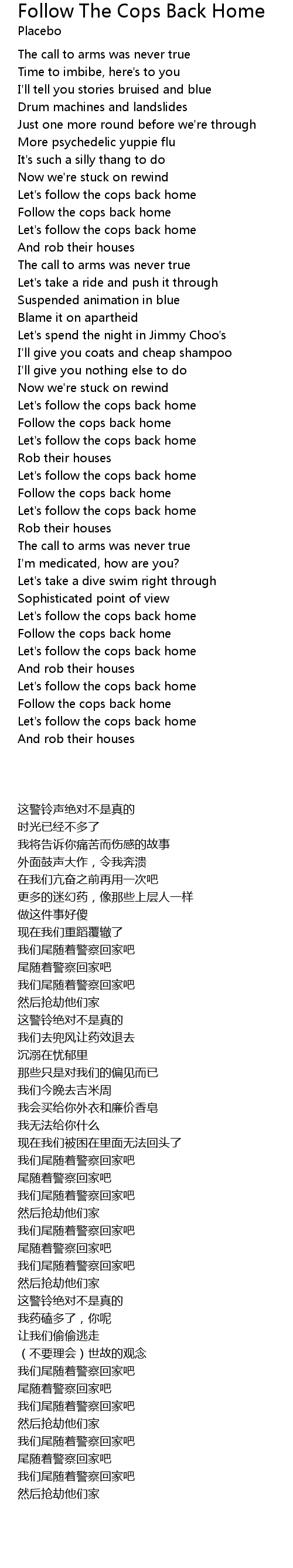 | [01:13.46] | Follow the cops back home |