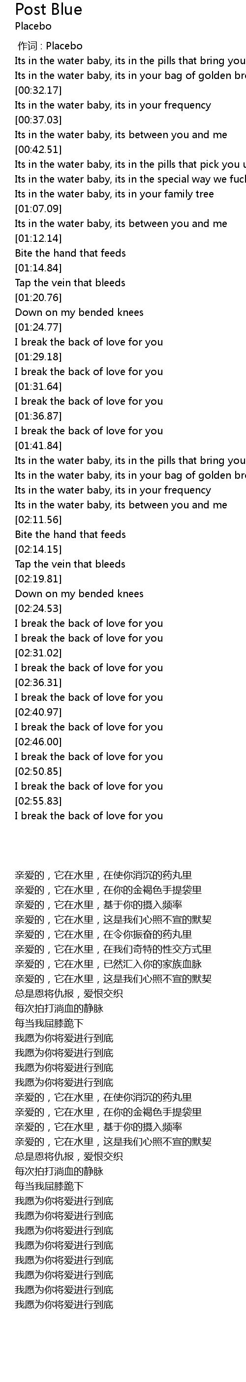| [01:52.48] | Its in the water baby, its in the pills that bring you down |