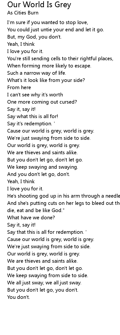 Cause our world is grey, world is grey. |