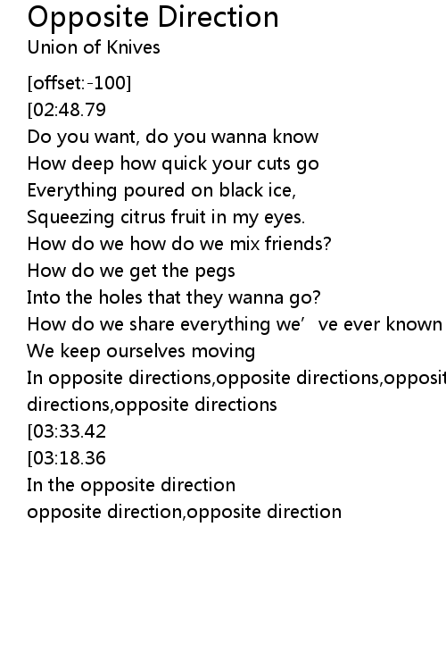 | [02:42.54][03:18.36] | In the opposite direction,opposite directions |