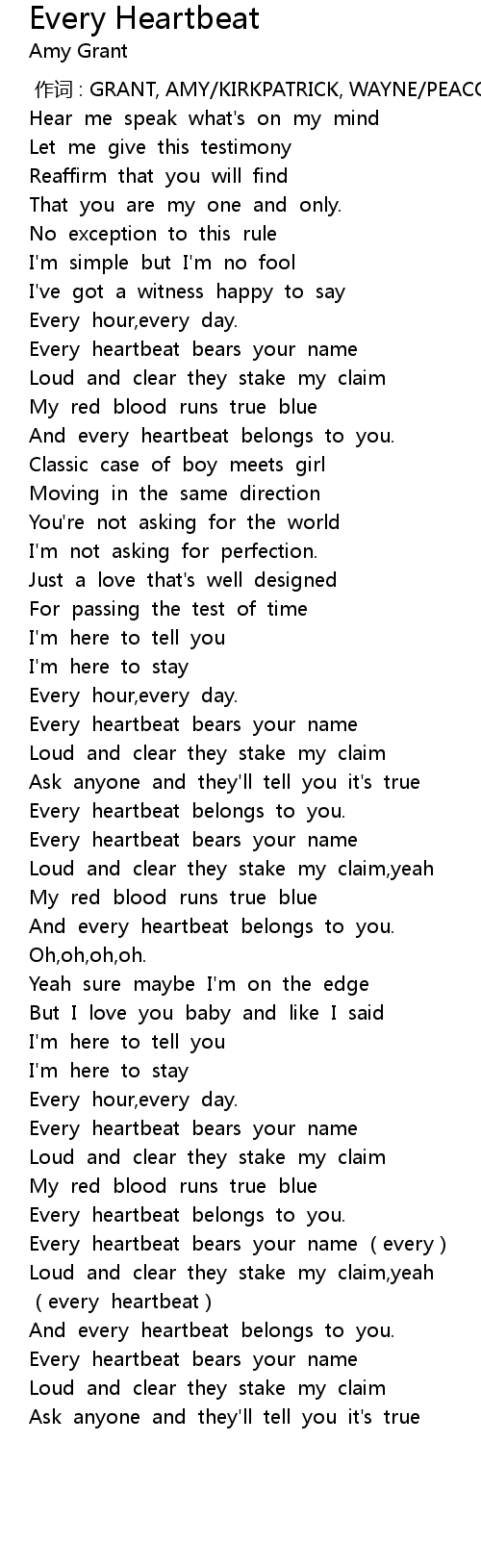 | [00:00.00] | 作词 : GRANT, AMY/KIRKPATRICK, WAYNE/PEACOCK, CHARLIE |