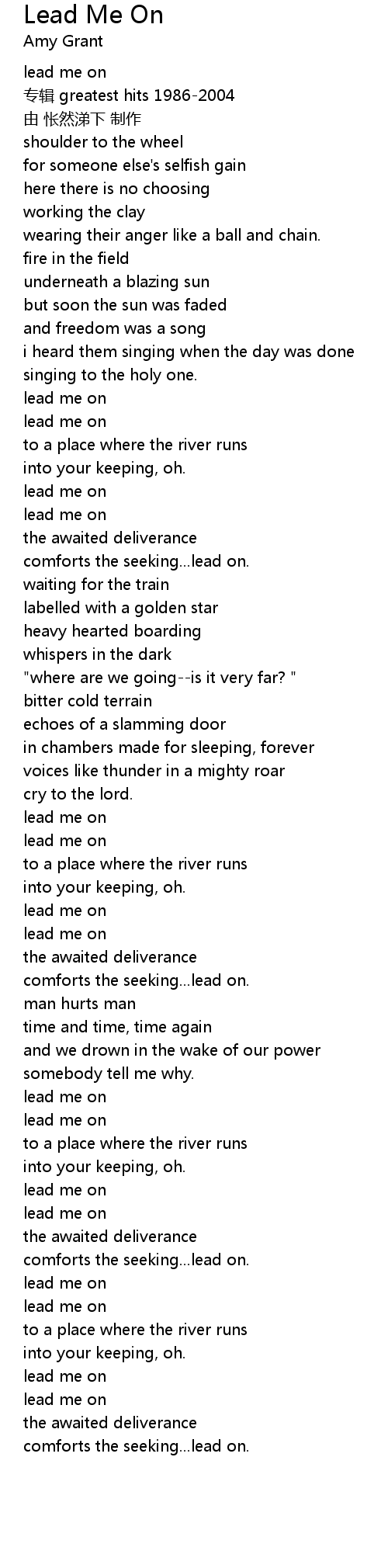 | [00:00.20] | lead me on |