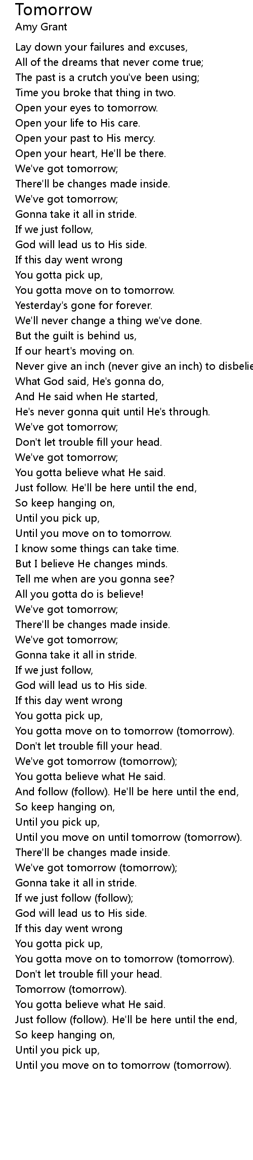 You gotta move on to tomorrow (tomorrow). |