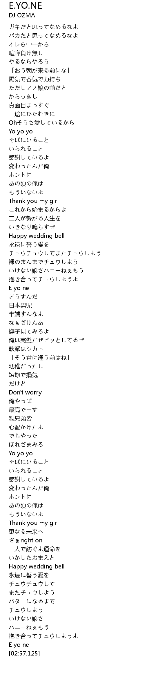 | [02:51.282] | 抱き合ってチュウしようよ |