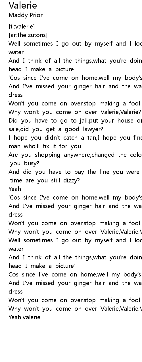 Why won't you come on over Valerie,Valerie.Valerie,Valerie? |