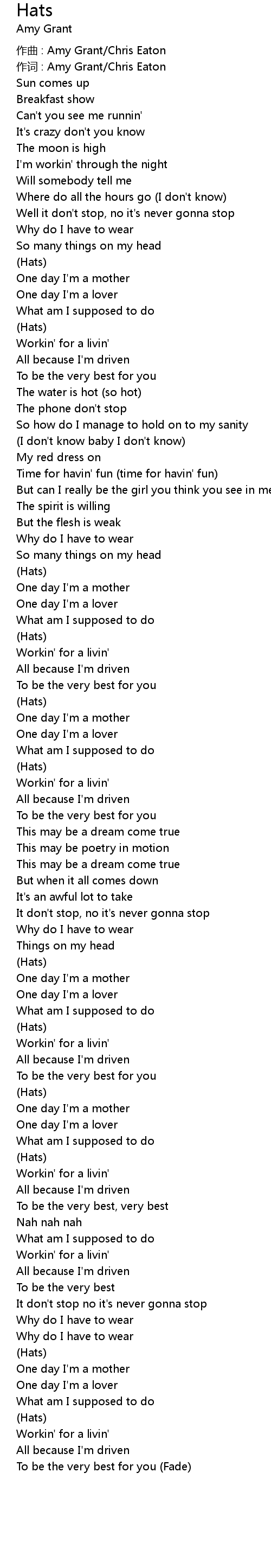 | 作词 : Amy Grant/Chris Eaton | |