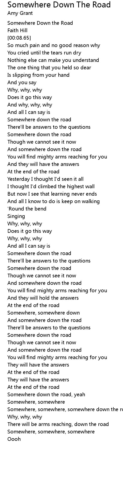 Somewhere, somewhere, somewhere down the road |