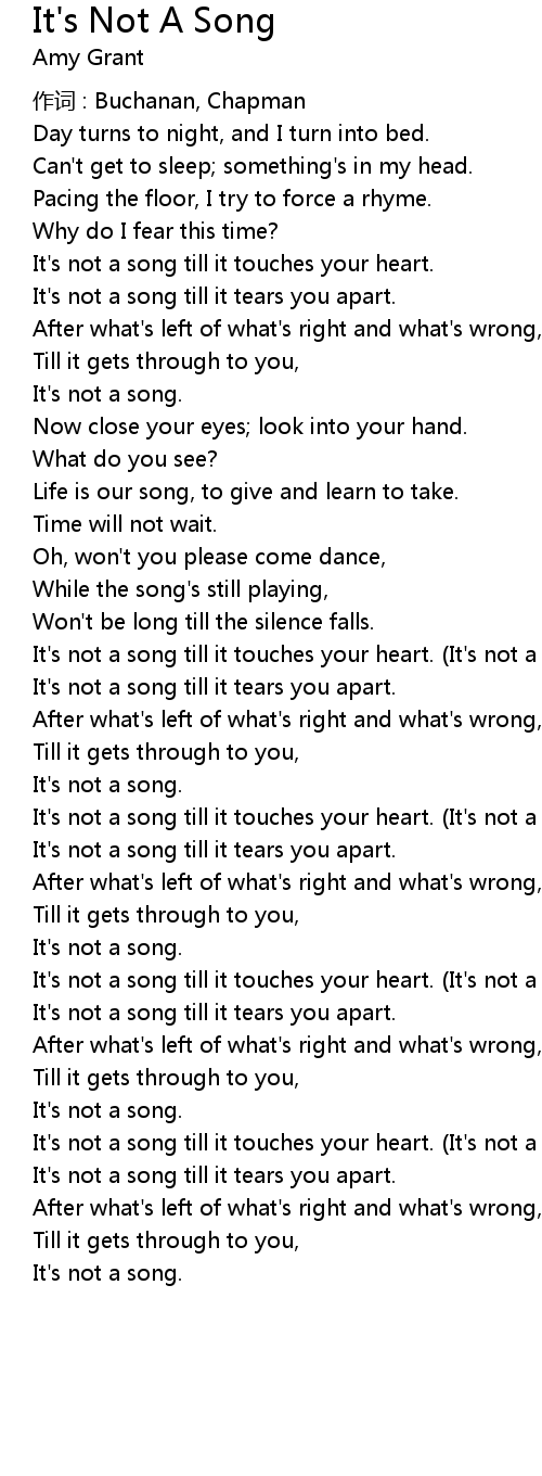 | It' s not a song till it touches your heart. It' s not a song. | |