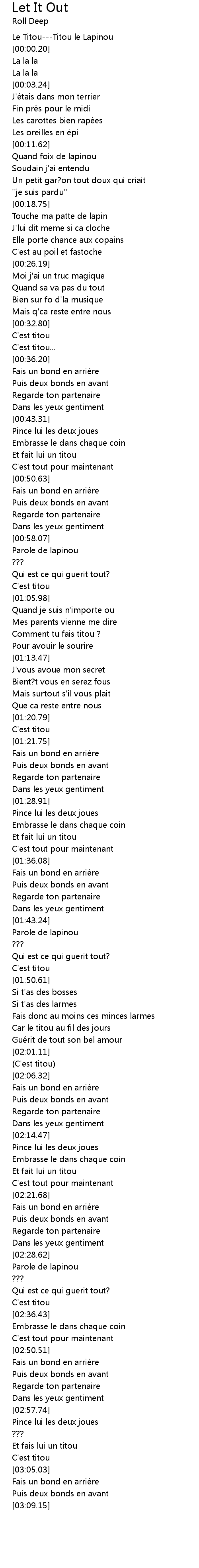 | [00:00.00] | Le TitouTitou le Lapinou |