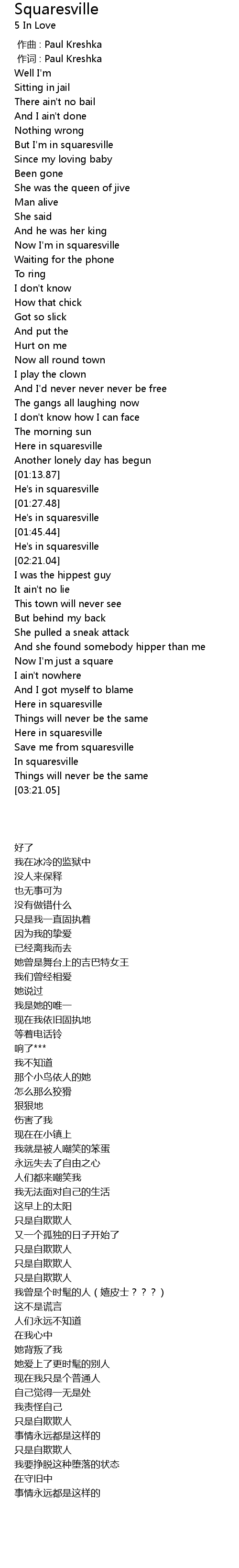 | [03:01.94] | Here in squaresville |