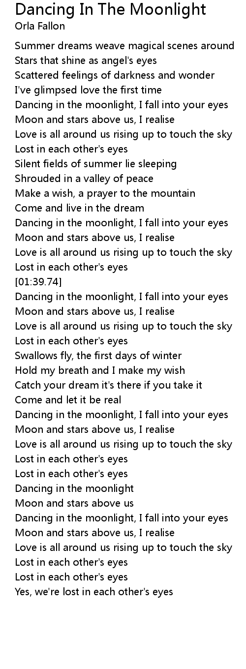 Dancing in the moonlight, I fall into your eyes |