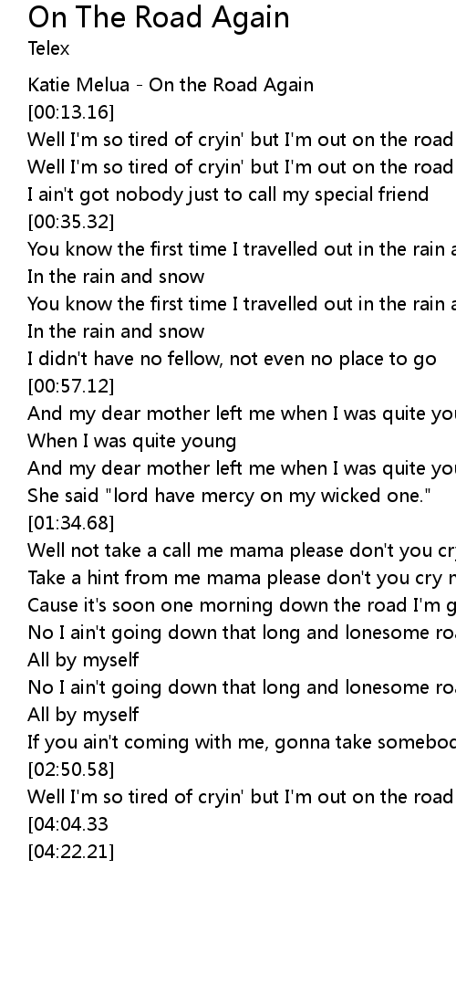 Well I'm so tired of cryin' but I'm out on the road again |