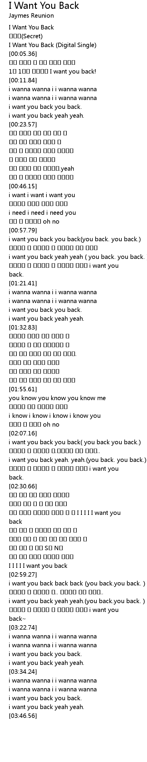 | [00:03.95] | I Want You Back (Digital Single) |
