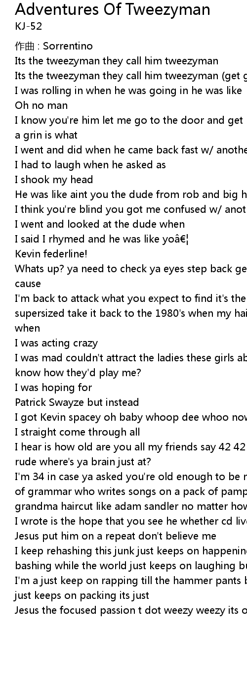 | Song | Adventures Of Tweezyman |