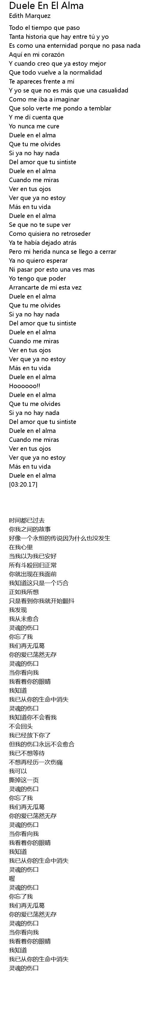 | [03:00.90] | Duele en el alma |