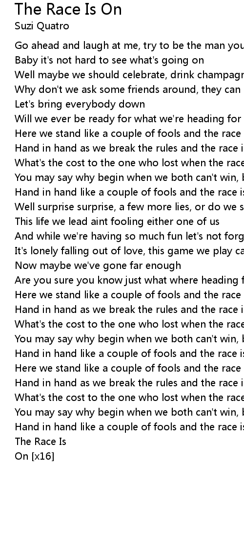 Here we stand like a couple of fools and the race is on |