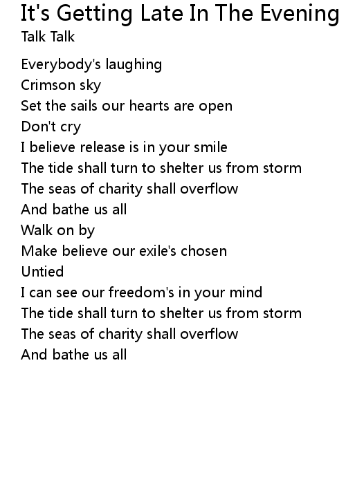 | Song | It's Getting Late In The Evening |