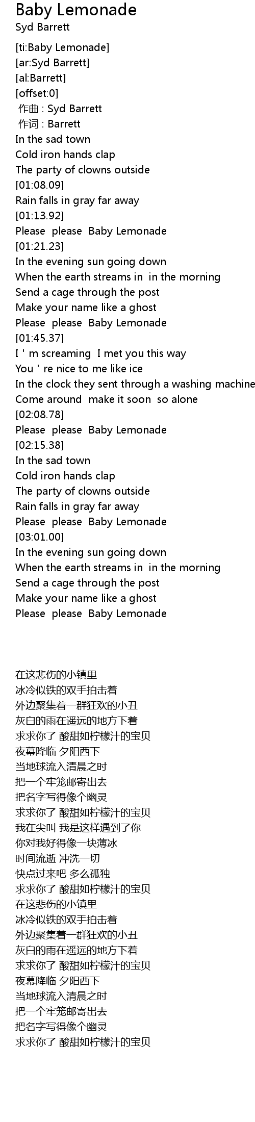 | [01:39.57] | Please please Baby Lemonade |