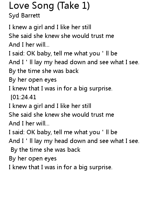 | Song | Love Song (Take 1) |