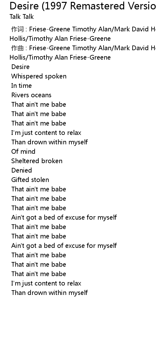 | [00:00.000] | zuò cí : FrieseGreene Timothy Alan Mark David Hollis Mark S. Hollis Timothy Alan FrieseGreene |