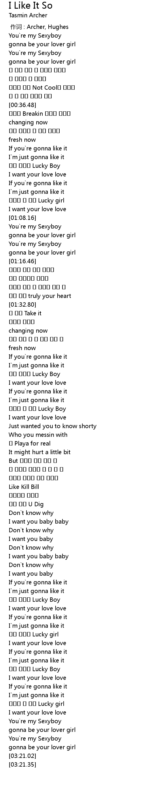 | [03:16.71] | You`re my Sexyboy |