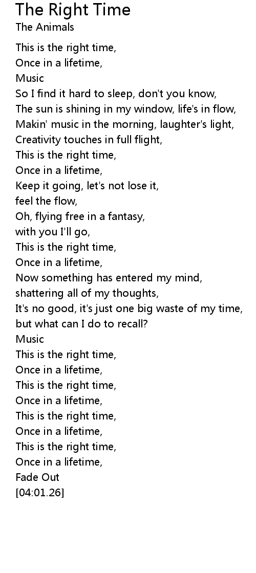 This is the right time, |