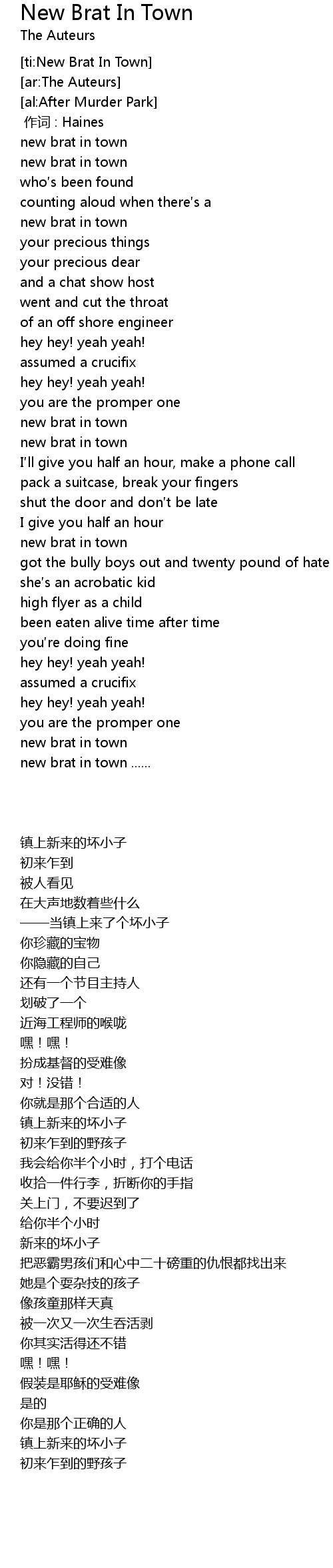 | [00:31.94] | new brat in town |