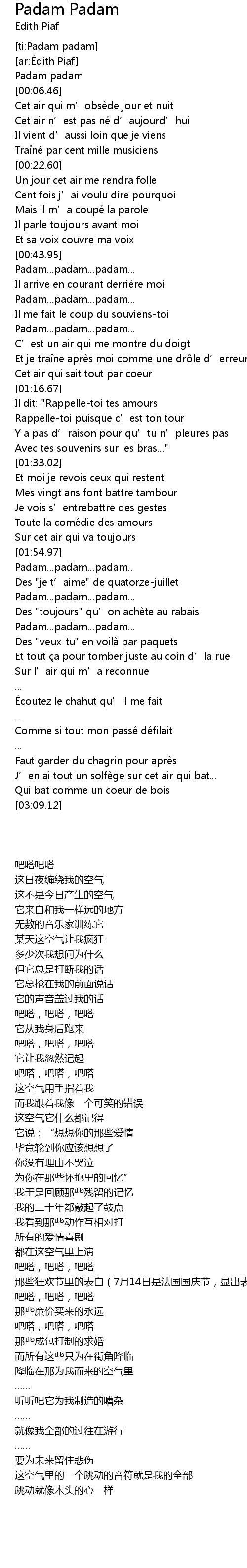 | [02:03.33] | Padam... padam... padam... |