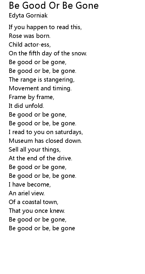 Be good or be gone, |