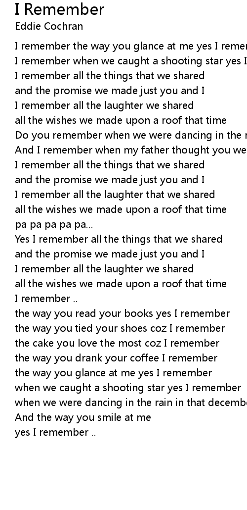 I remember .. |