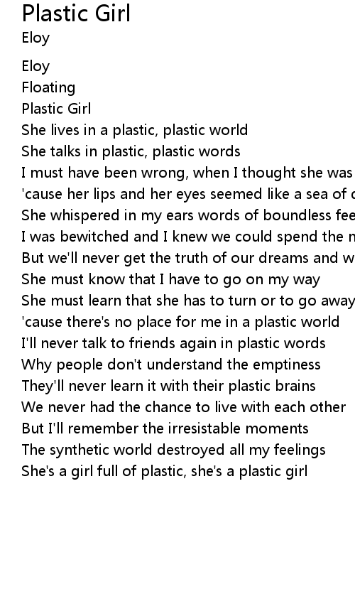 She's a girl full of plastic, she's a plastic girl |