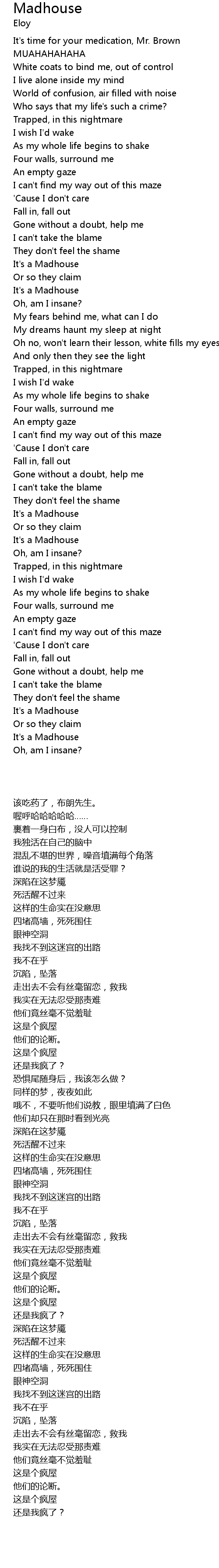 White coats to bind me, out of control |