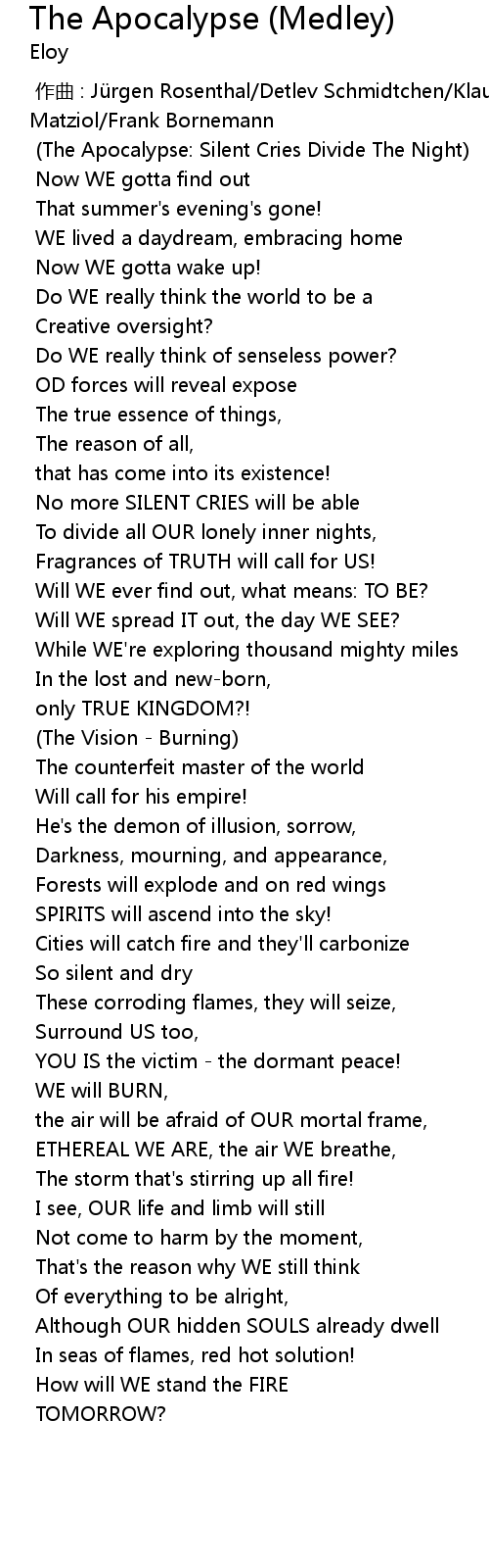| [00:00.252] | The Apocalypse: Silent Cries Divide The Night |