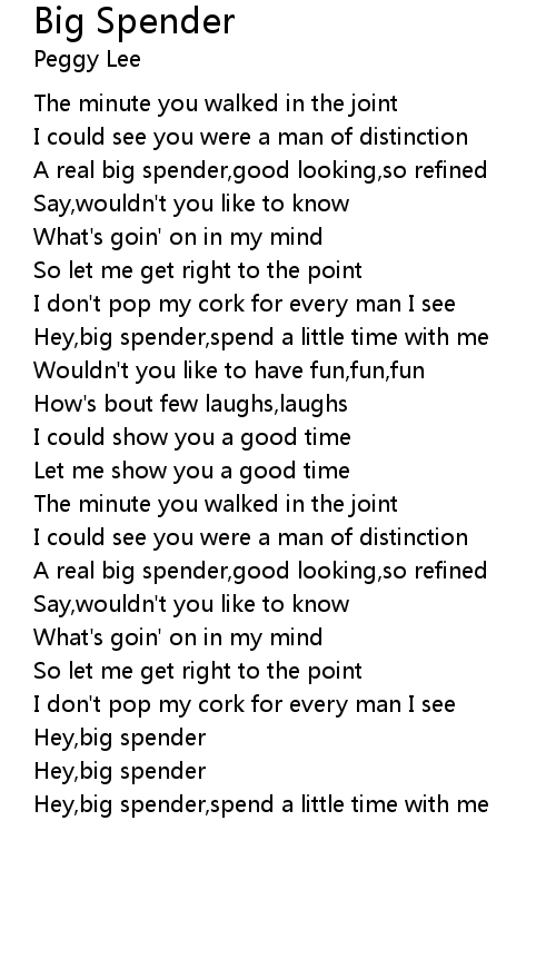 Hey,big spender,spend a little time with me |