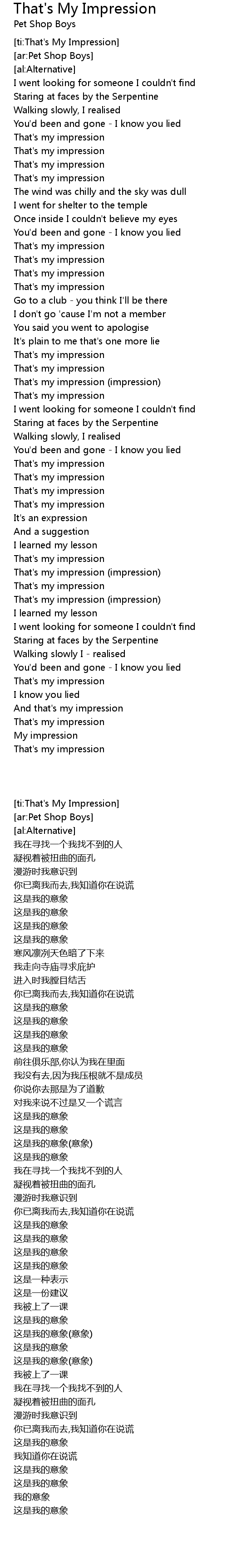 [ti:That's My Impression] |