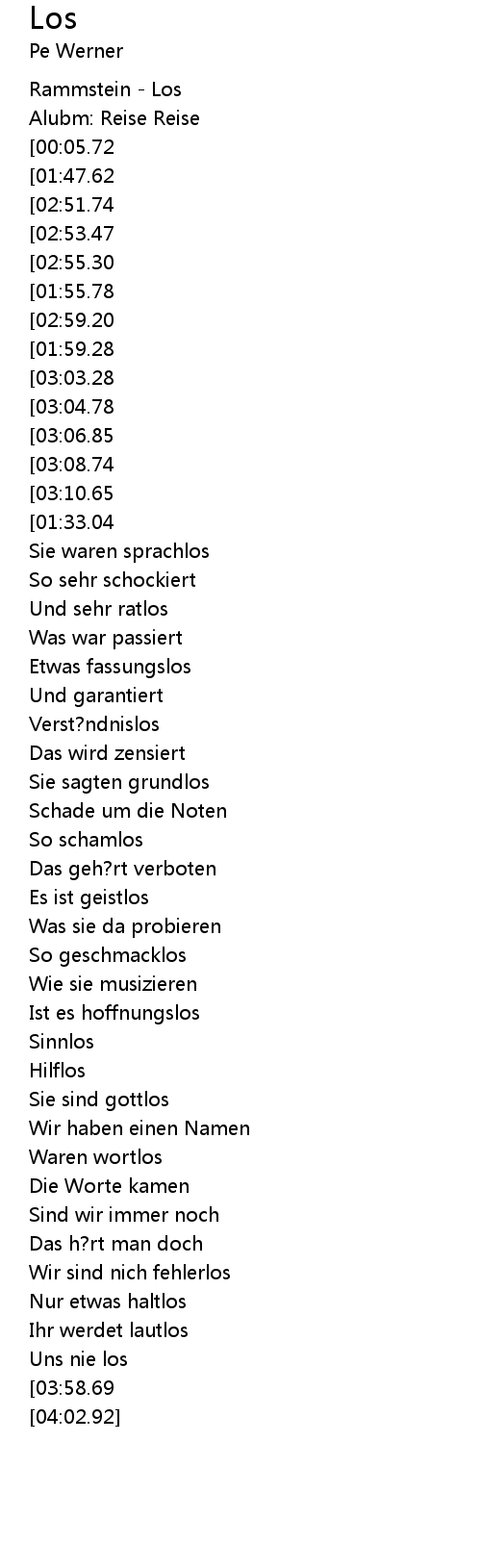 | [00:15.23][01:55.78][02:57.36] | Etwas sanglos |