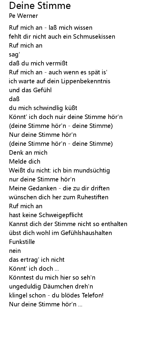 | (deine Stimme hör'n - deine Stimme) | |