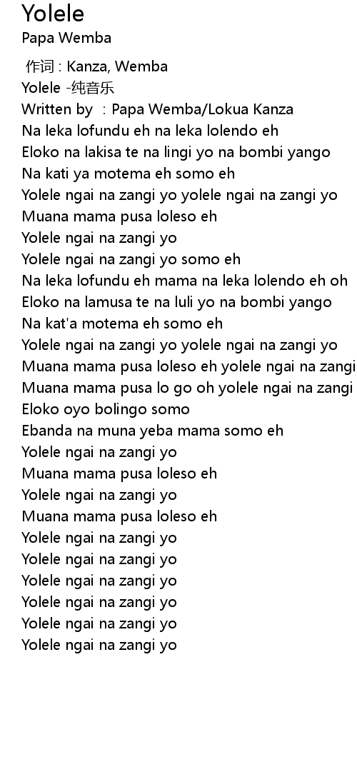 | [00:53.944] | Yolele ngai na zangi yo yolele ngai na zangi yo |