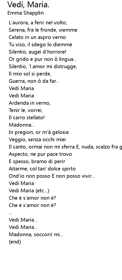 | Song | Vedi, Maria. |